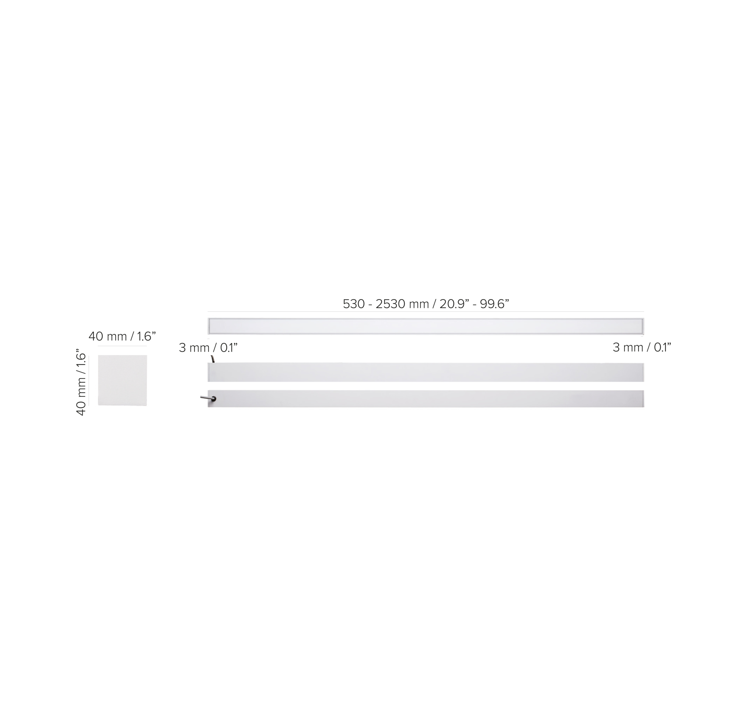 - Disponibile in incrementi di 250 mm: da 530 mm a 2530 mm e a richiesta è disponibile con lunghezza su misura.