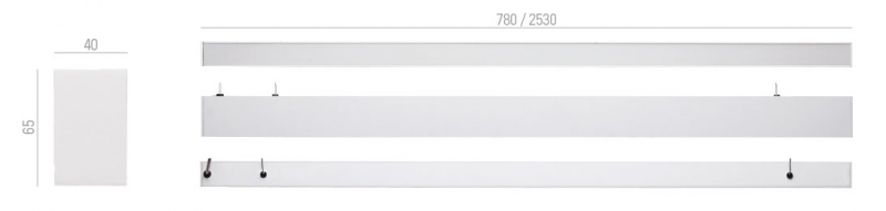 - Disponibile in incrementi di 250 mm: da 780 mm a 2530 mm