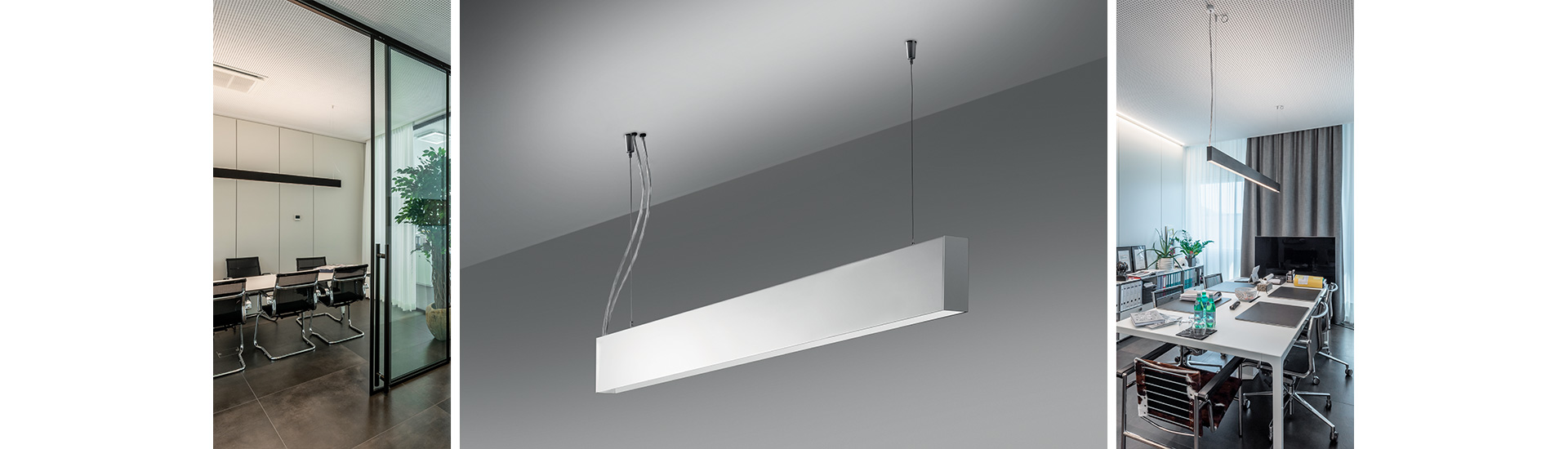 Linear form and great lighting potential for two sides emission pendant luminaire