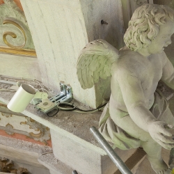 Adjustable projector for cornice or column capitals, suited for the illumination of valuable details contained in places of worship