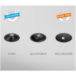 To enhance the interior spaces, the DOT 45 was used, including the IP65 version for bathrooms. This fixture is available in a 36° symmetrical beam version and an asymmetric wallwasher version for wall lighting.
