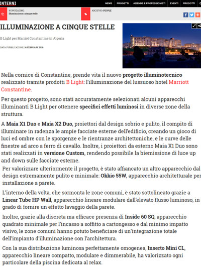 B LIGHT: illuminazione a cinque stelle per il Marriott Constantine nella splendida cornice di Constantine.
