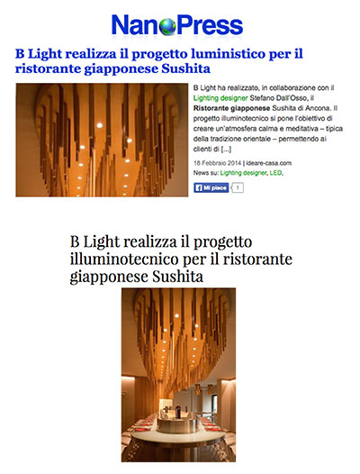 B LIGHT realizza il progetto illuminotecnico del ristorante giapponese Sushita.