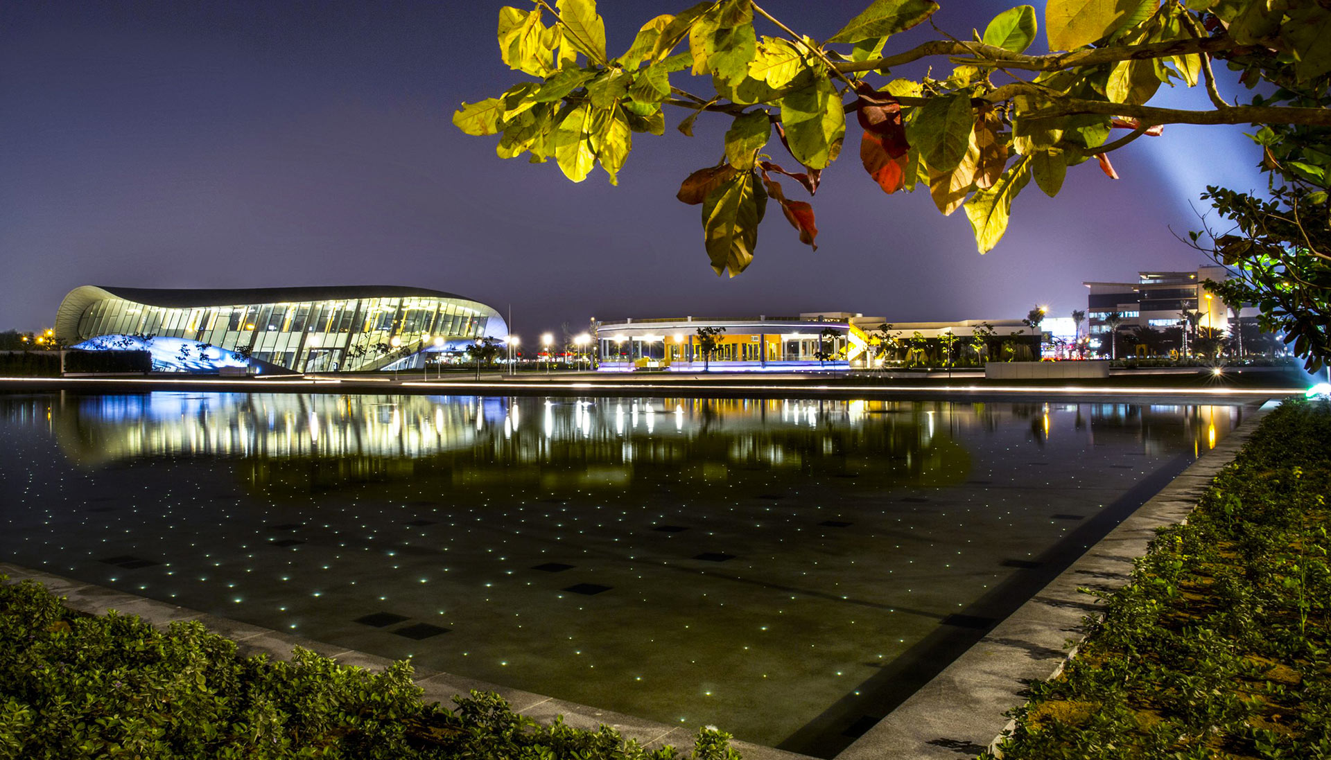 The technical-lighting project was realized by Umaya Lighting Studio based in Dubai, one of the most innovative emerging lighting studios in the Middle East. Umaya used B LIGHT’s know-how for the outdoor lighting of this majestic project. The aim of the project is to make the Museum’s stunning architecture stand out and to emphasize the uniqueness of its structure. The wavy shape of the building is designed to remind us of the shape of the unification Treaty of the UAE, whilst the seven tapering columns symbolize the pens used by the Founding Fathers of UAE, the seven sheiks who signed the Union Agreement in 1971. Each element in the planning of the Museum represents fundamental symbols and meanings for the UAE, highlighted by a skillful use of light.